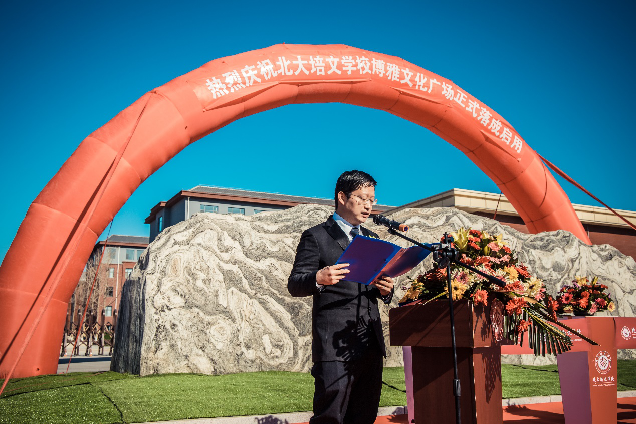 而后,由北大培文學校丁時輝副校長致辭,丁副校長首先對參與學校建設、支持學校發(fā)展的各單位、社會各界人士表示誠摯的感謝。他表示,作為教育工作者,一定會珍惜、維護優(yōu)良的教學環(huán)境,鞠躬盡瘁為廣大師生提供精心服務,全心全力踐行北大培文學校做真教育的教學理念,為當?shù)亟逃降奶嵘c發(fā)展做出應有的貢獻。