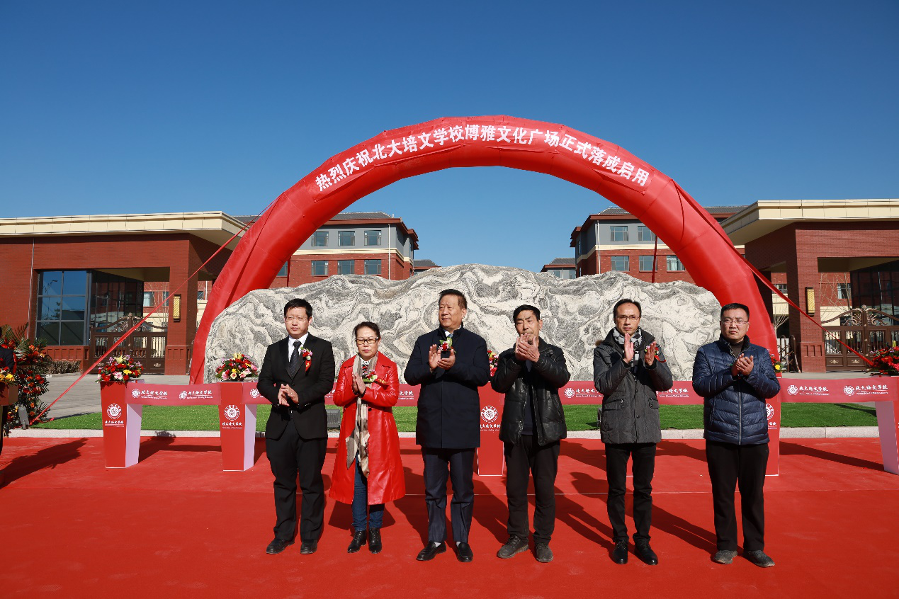 冬季風吹去霾天, 日出和煦照學園,暖心溫度人愜意, 信鴿舉翼道平安。11月25日上午,北大培文晉中實驗學校又一次迎來具有里程碑意義的盛事——學校正門及博雅文化廣場落成啟用典禮。