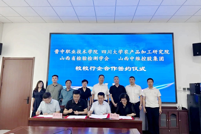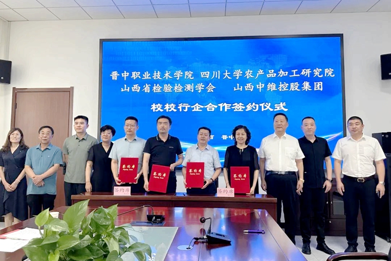 2023年8月18日,晉中職業(yè)技術(shù)學(xué)院、四川大學(xué)農(nóng)產(chǎn)品加工研究院、山西省檢驗檢測學(xué)會、中維控股集團(tuán)“校校行企”合作洽談會議暨共建“食品產(chǎn)業(yè)學(xué)院”合作簽約儀式在晉中職業(yè)技術(shù)學(xué)院行政樓舉行。晉中職業(yè)技術(shù)學(xué)院院長雒衛(wèi)廷、四川大學(xué)農(nóng)產(chǎn)品加工研究院常務(wù)副院長趙志峰、山西省檢驗檢測學(xué)會副會長張紅、中維控股集團(tuán)董事長郭秀忠等領(lǐng)導(dǎo)出席,與會的還有各單位相關(guān)負(fù)責(zé)同志。